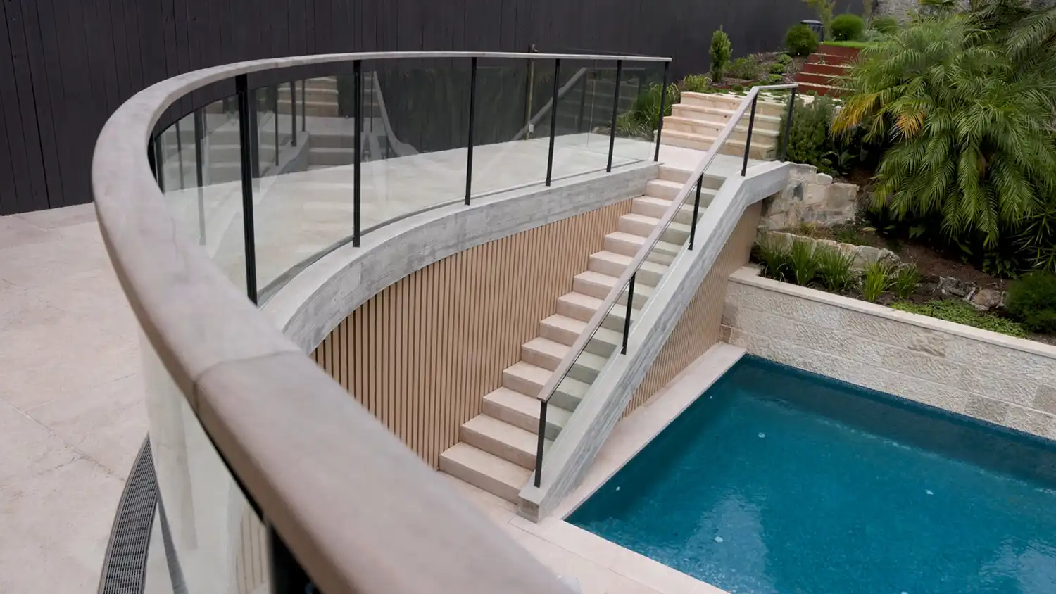 A sandstone-clad internal lift future-proofs the home, providing convenience now while also ensuring accessibility in the long term.